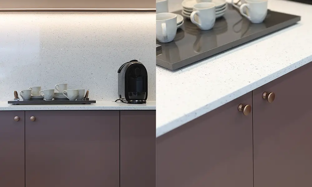Os sistemas de abertura também evoluem. Ferragens com amortecimento de alta precisão, portas com sistema “push to open” e mecanismos basculantes com travamento suave permitem eliminar puxadores aparentes sem comprometer funcionalidade. Em ambientes integrados, isso contribui para uma leitura visual limpa e contínua. Em módulos superiores, mecanismos articulados possibilitam abertura confortável mesmo em alturas maiores, respeitando ergonomia e segurança.